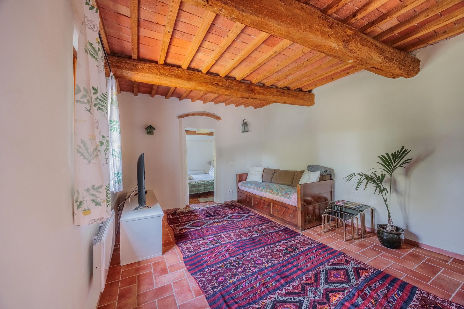 Der Swimmingpool und der Garten werden nur mit einer weiteren Ferienwohnung geteilt, sodass Ruhe und Privatsphäre gewährleistet sind. Das Haus ist über einen etwa 150 Meter langen Feldweg von der Hauptstraße erreichbar.