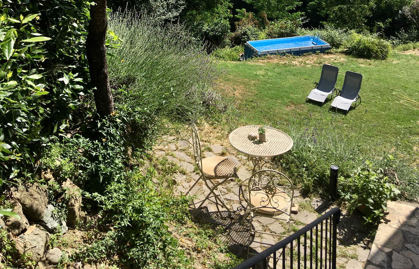 Holiday apartment with private terrace, independent entrance, and large garden with swimming pool in Tuscany.