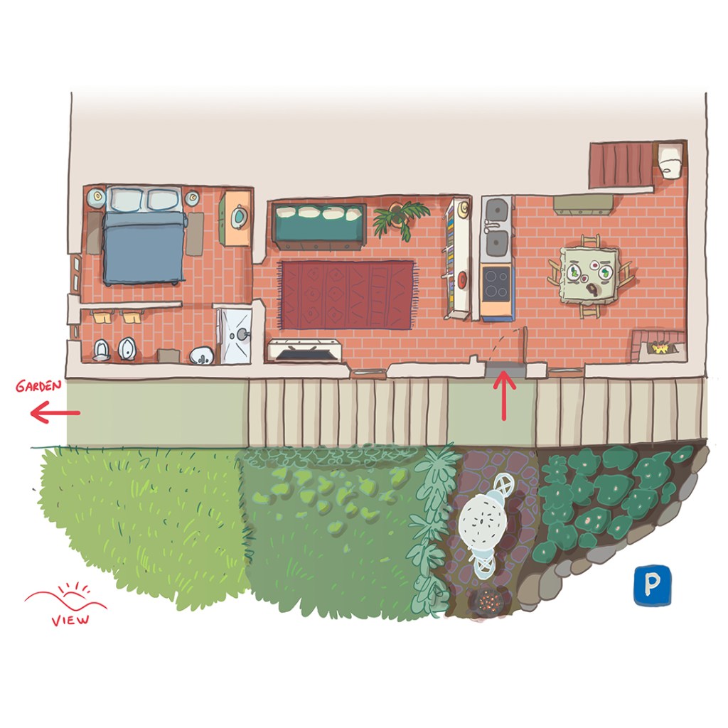 The swimming pool and garden are shared with two other rental units. The property is reached from the main road via a country lane of approximately 150 meters.